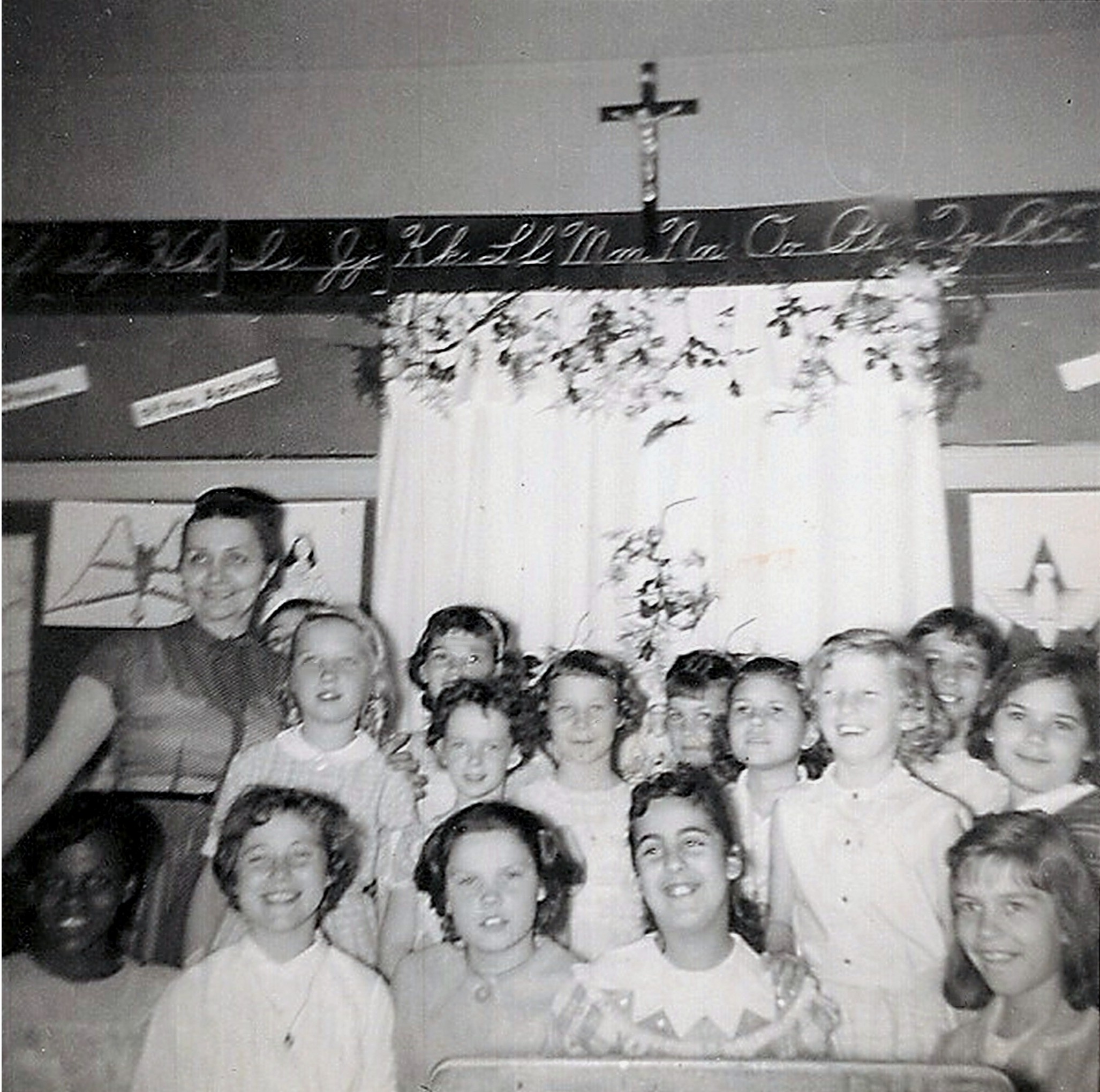A former classmate of mine from Holy Name has passed away. The feeling I had when I read the news was one of great sadness. I have not had contact with Bernadette since we finished 8th grade in 1965, however I remember her and her family very well. I believe that she lived on 7th St. during her childhood. I secretly had a “crush” on Bernadette during grade school. I remember her mom used to help serve breakfast on First Fridays, standing behind the counter in the cafeteria and dishing out those wonderful maple rolls.