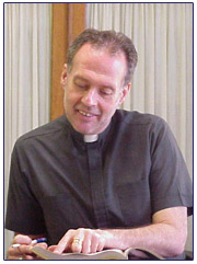 fatherd_deskTo say that Fr. Dennis is captivating as a celebrant is an understatement. His personality, positive demeanor, style and speaking ability is “over the top” in a very positive way. When you couple his talents with the extraordinary musical talents of the Music Ministry members, Debbie Walters, Ray Judy and Greg Lesko, you have an experience just this side of heaven.