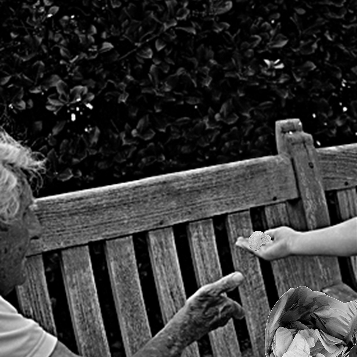 When he had gone about three blocks, he met an old man. He was sitting in the park, just staring at some pigeons. The boy sat down next to him and opened his suitcase.