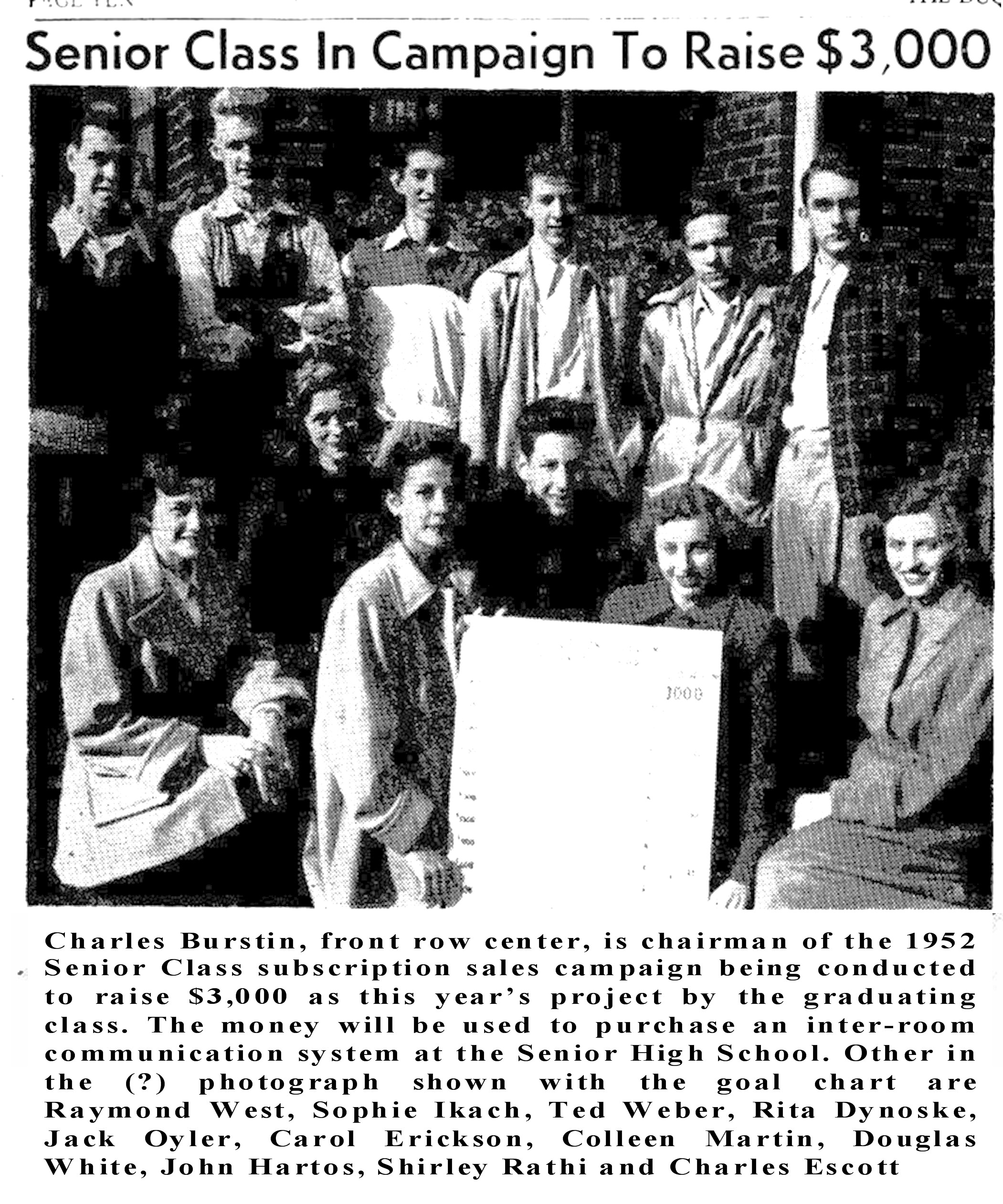 TEDDY WEBER is class of 52 right side of the back row getting the $3000.00 for the class. Charles Burstin is an M.D. & in California last I heard & is directly behind the sales chart.