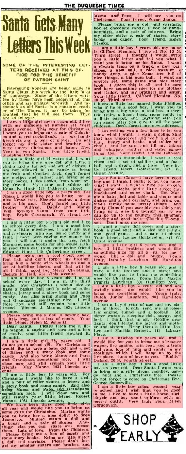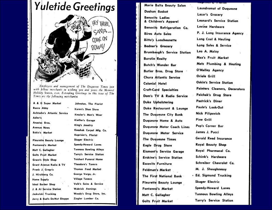 Two additional articles from the Duquesne Times – 11-30-1950 –
