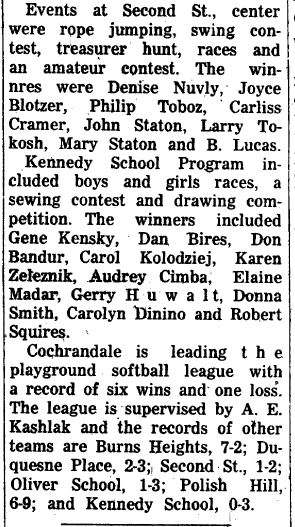 In a previous post, I included some articles from The Duquesne News that everyone enjoyed reading. Some even found their own name or a parent’s name in the article. Since this post is related to going back to school, I’m included some articles I found that I think you’ll enjoy as much as the last ones I posted. Let me know! Happy reading neighbors!
