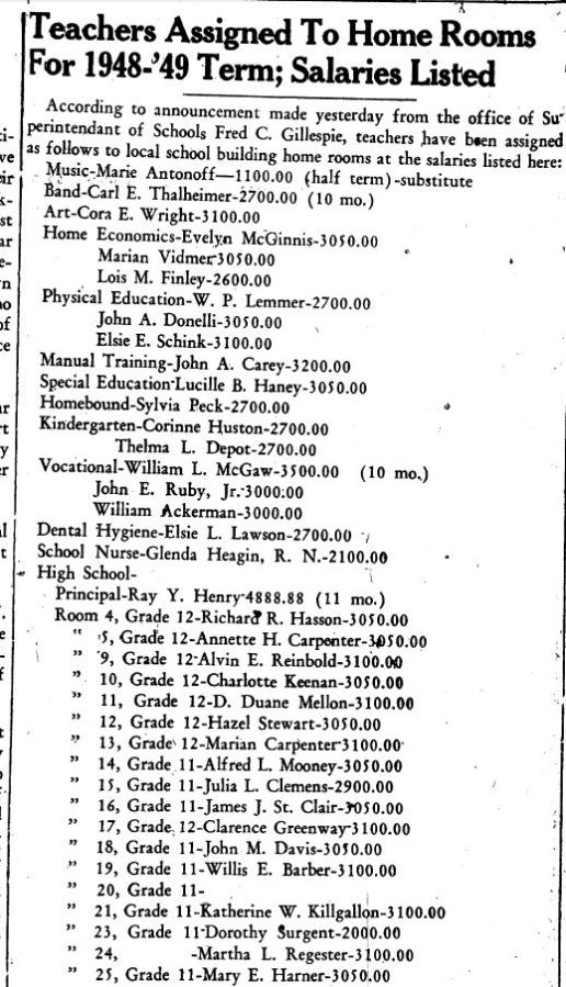 Teacher List – 1948-49 9-2-1948